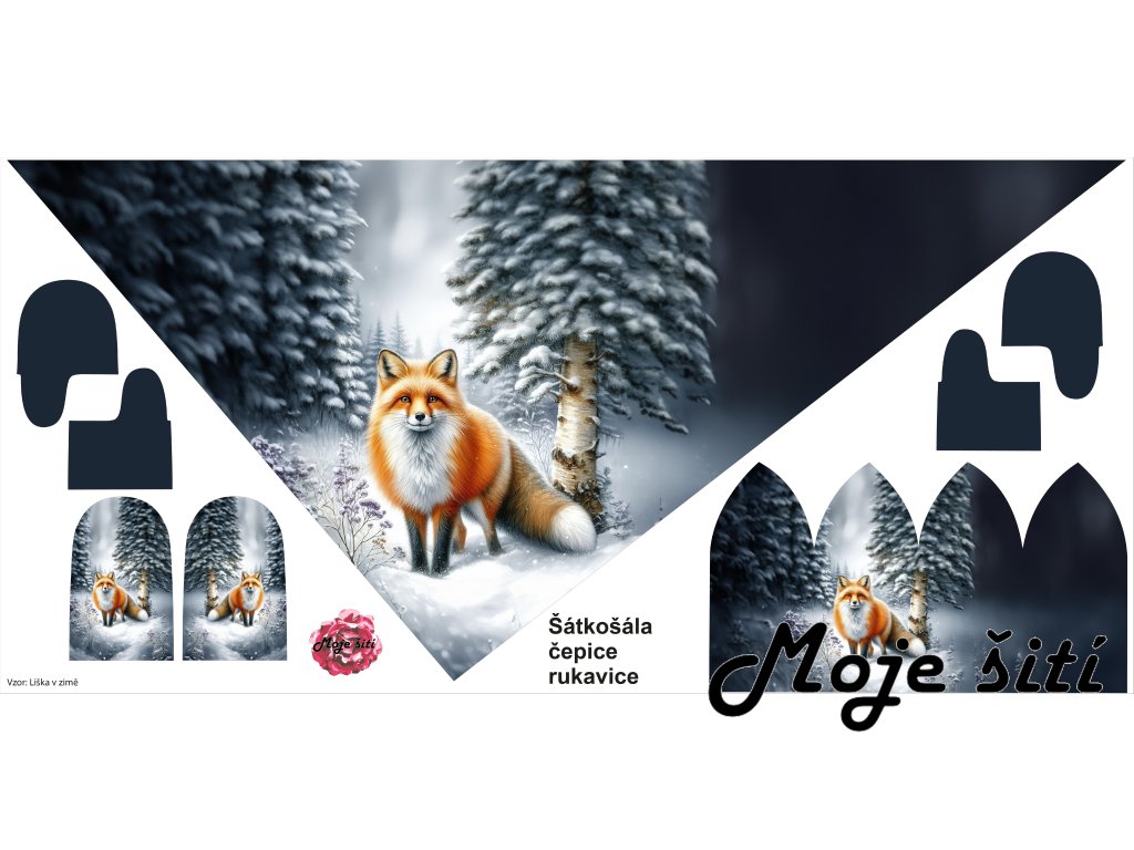 Panel na šátkošálu s čepicí homeless a rukavicemi do nápletu. Panely jsou natištěné na pružném materiálu, takže by čepice i rukavice měly sedět. Je možné je malinko zmenšit v případě potřeby.