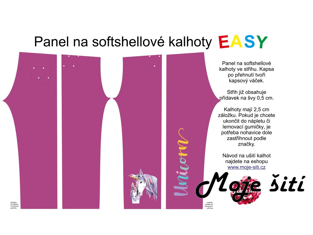 Panel na softshellové kalhoty EASY Jednorožec s mládětem na ostružinové