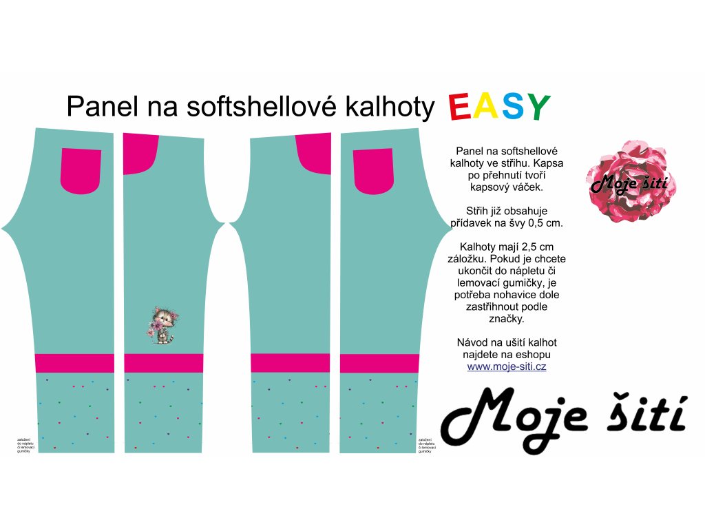 Panel na softshellové kalhoty EASY Kočičky s květinami-vel.128-jarní soft