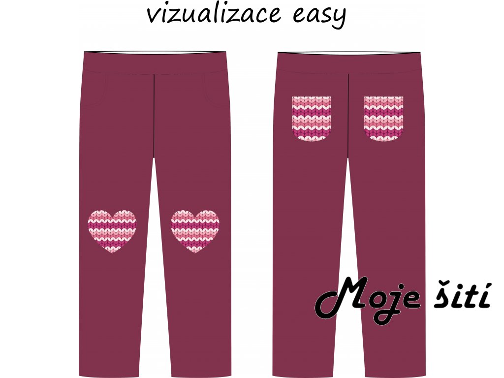 Střih kalhot má prodlouženou délku 2,5 cm od běžné délky kalhot. Takto lze kalhoty zakončit dole do gumy nebo podle značení ustřihnout a zakončit do nápletu.