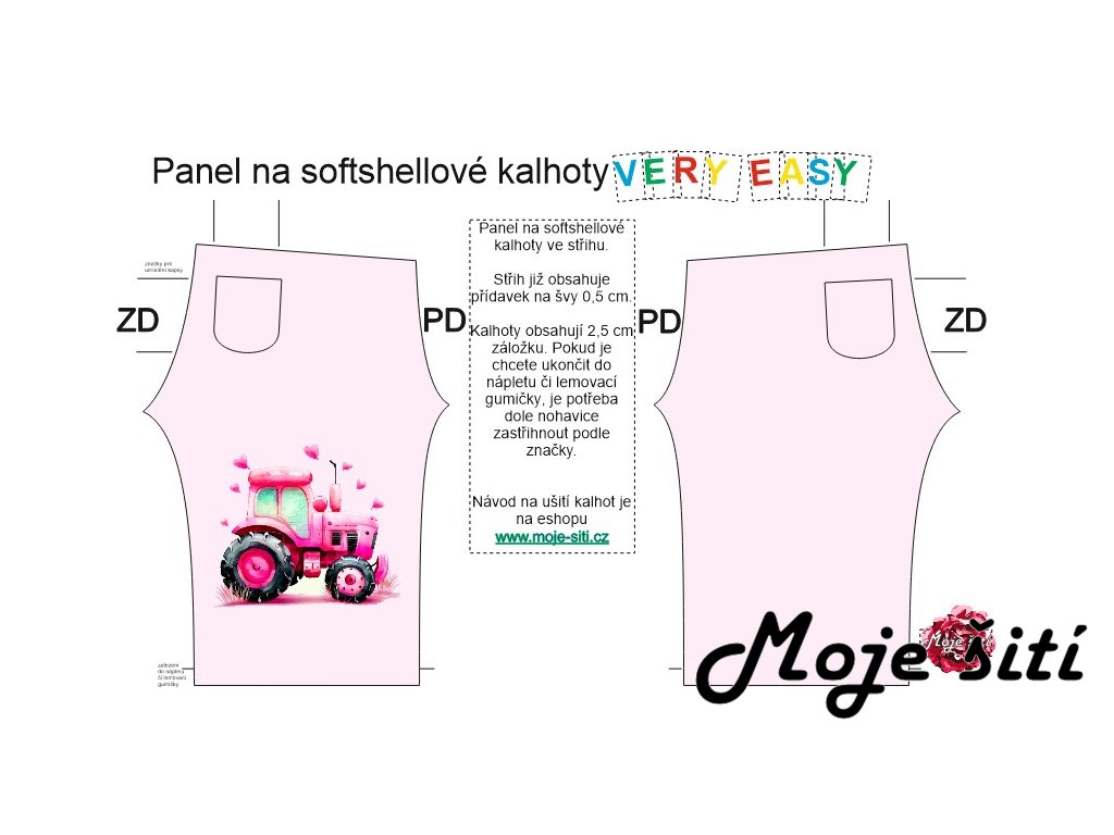 Panel na softshellové kalhoty VERY EASY Růžové traktory