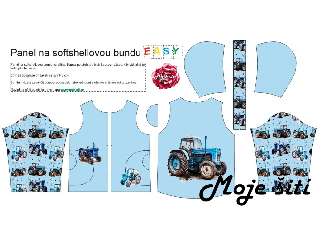 Panel na softshellovou bundu EASY Modré traktory