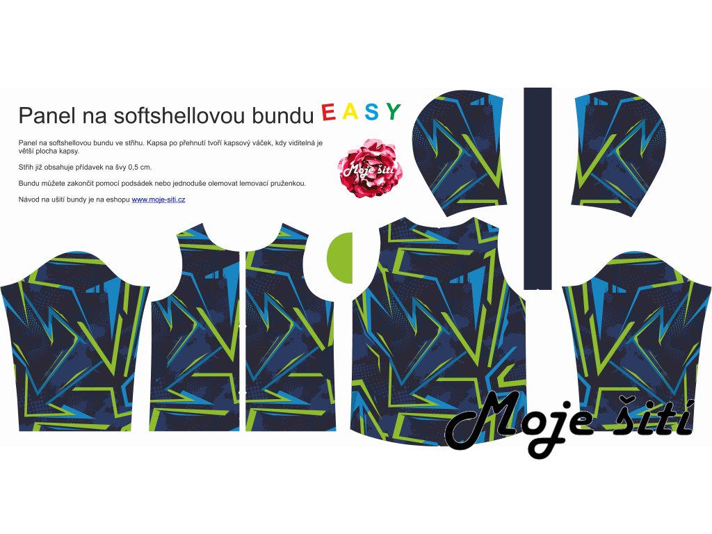 Panel na softshellovou bundu EASY Modro-zelený abstrakt - vel. 134 - zimní softshell - VADA