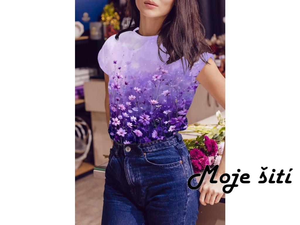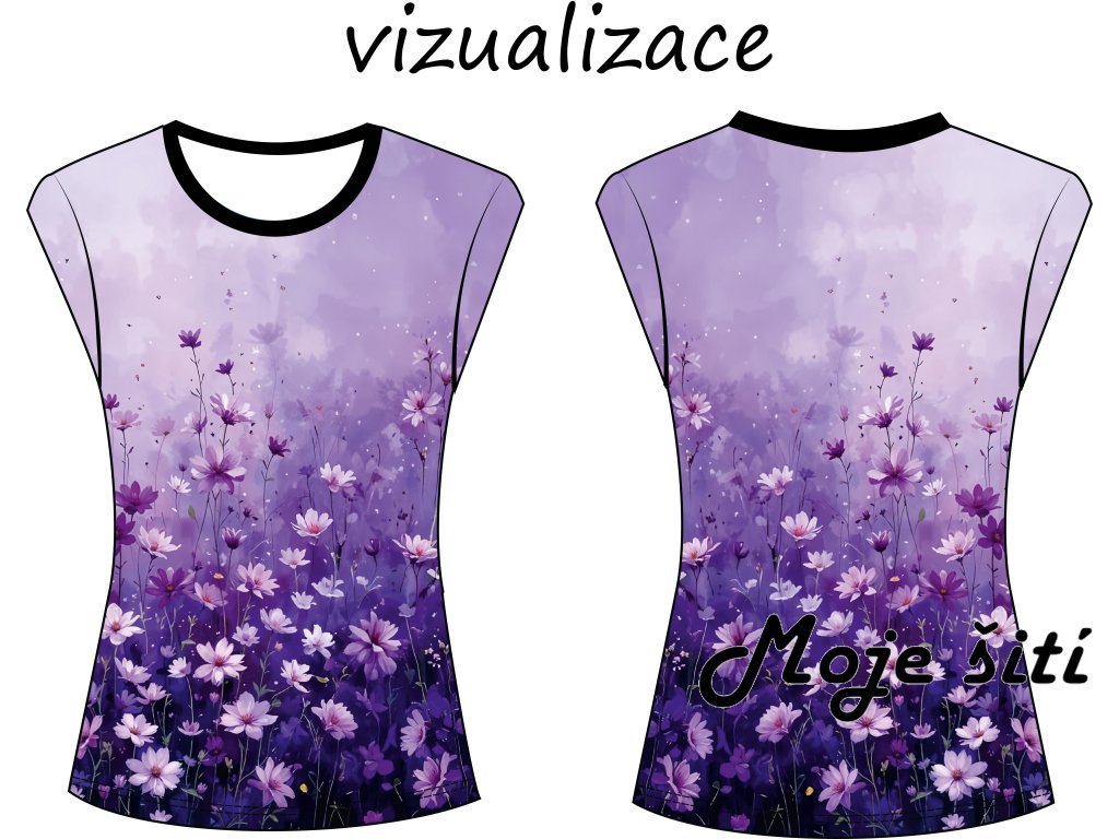 Panel na dámské triko s přinechaným rukávem ve střihu.