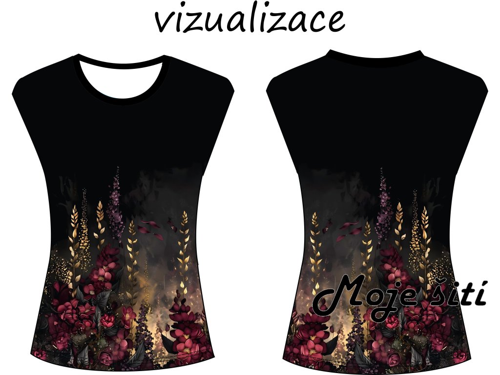Panel na dámské triko s přinechaným rukávem ve střihu.