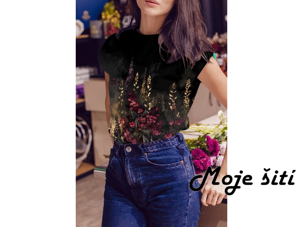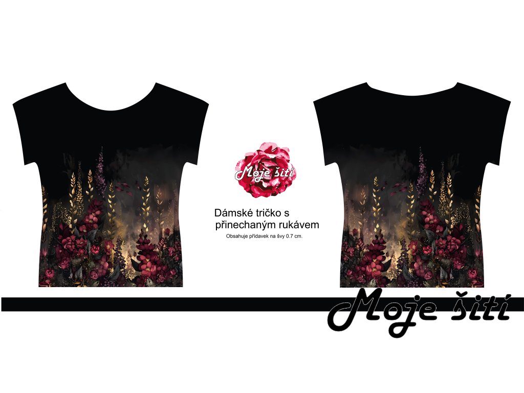 Panel na triko s přinechaným rukávem - Kvítky se zlatou