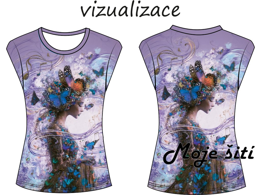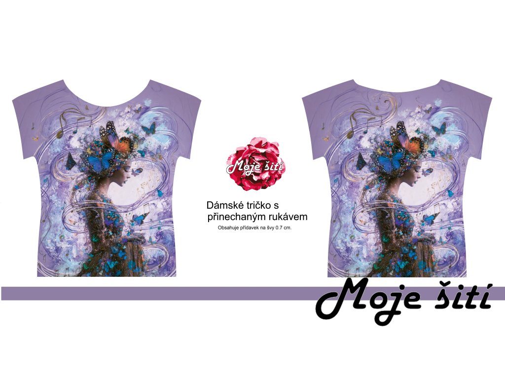 Panel na dámské triko s přinechaným rukávem ve střihu.