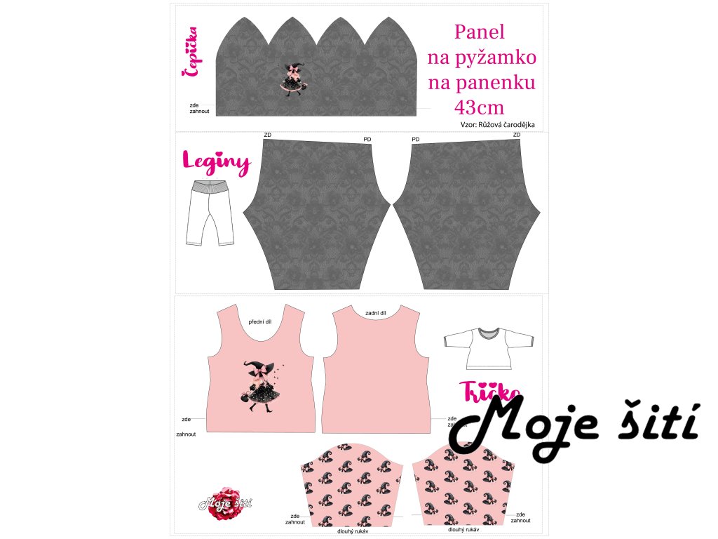 Panel pyžamko pro panenku 43cm Růžová čarodějka