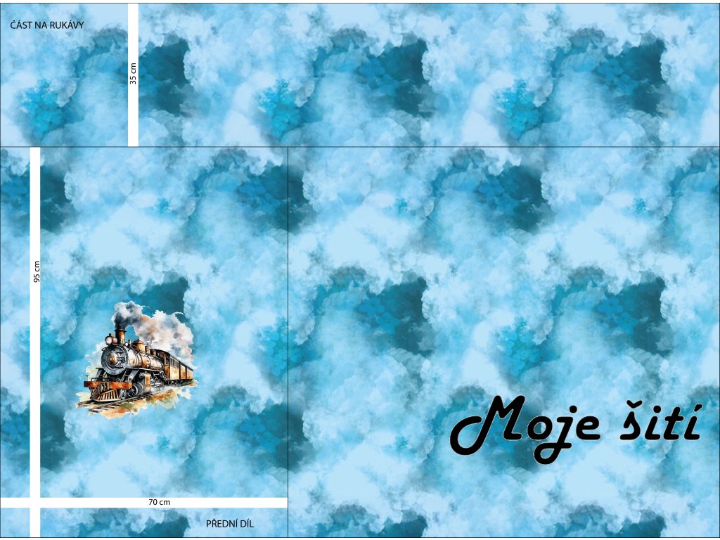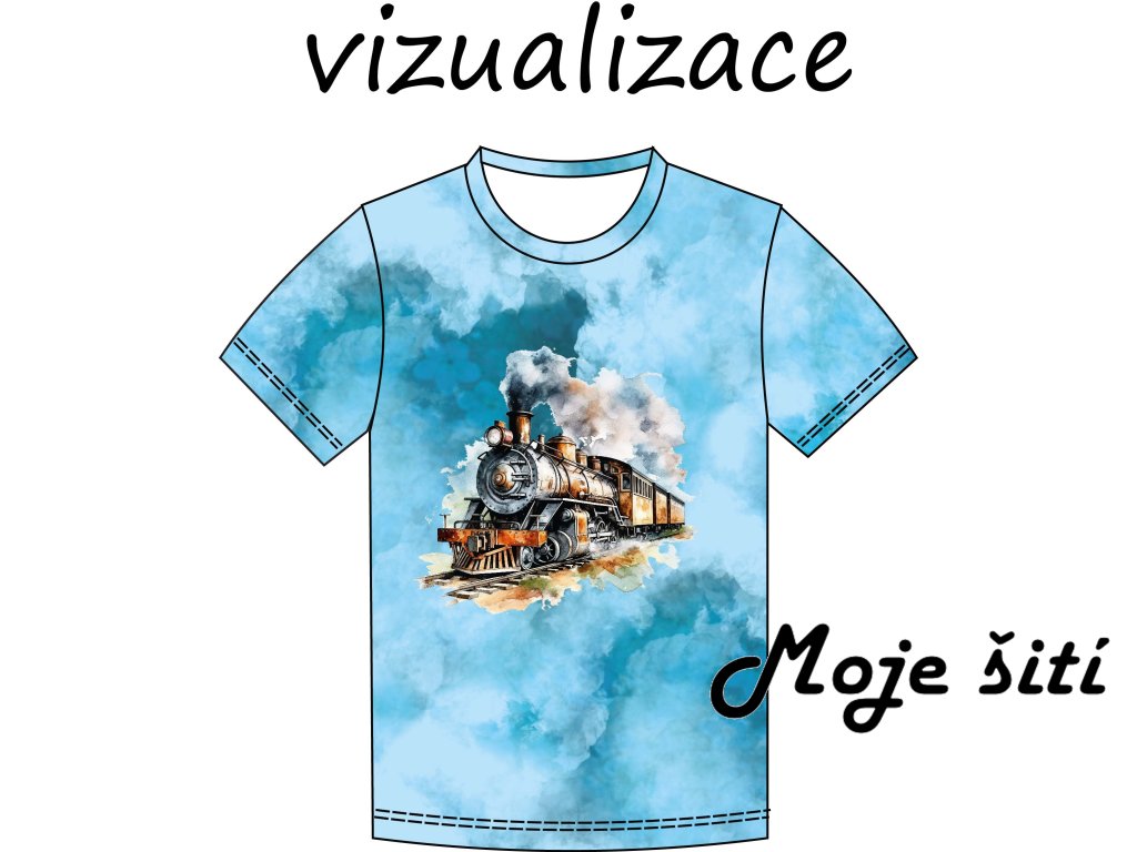 Pánský panel na tričko v plné šíři Parní vláček 130x175 - bavln. úplet - VADA