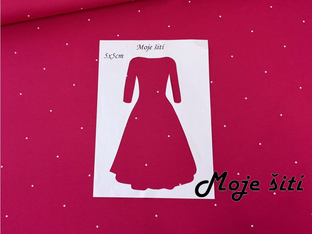 Teplákovina s elastanem Bílé puntíky 10cm od sebe na fuchsiové K