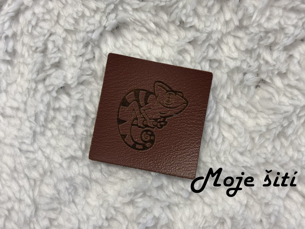 Štítek z broušené EKOKŮŽE - Chameleon 4x4 cm