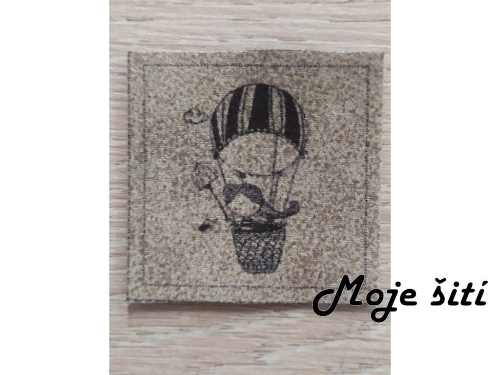 Štítek z broušené EKOKŮŽE - Holčička v balónu 4x4 cm II. JAKOST