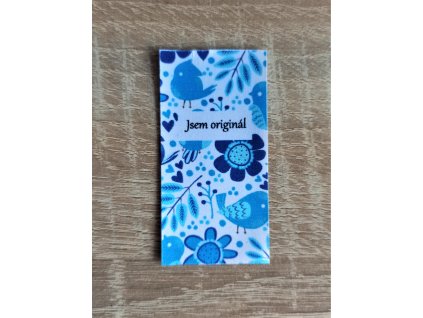 Barevné etikety do švu - Modré kvítky s ptáčky - Jsem originál