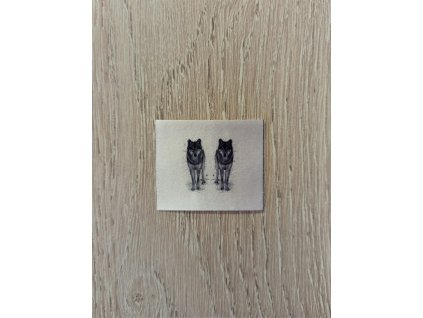Bílé saténové etikety do švu 3 x 3,5 cm. Sublimační tisk.