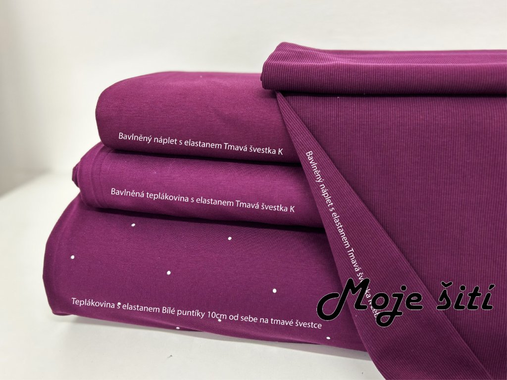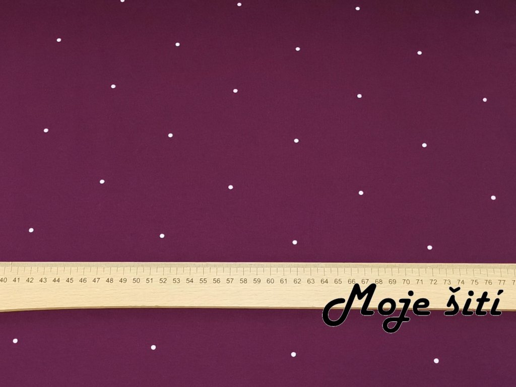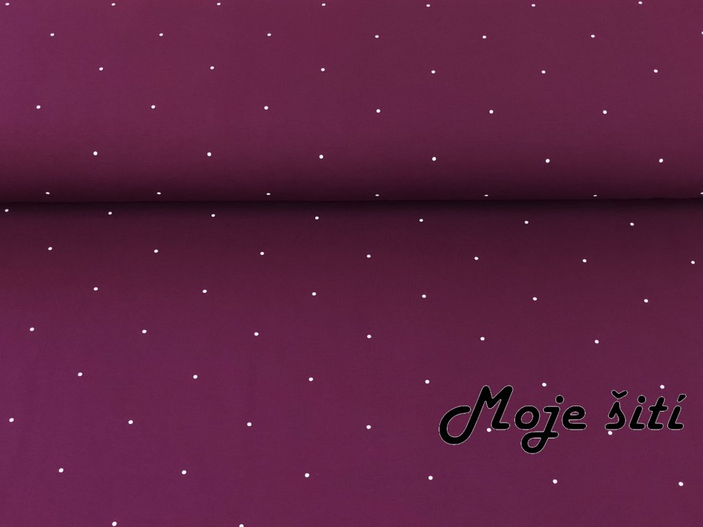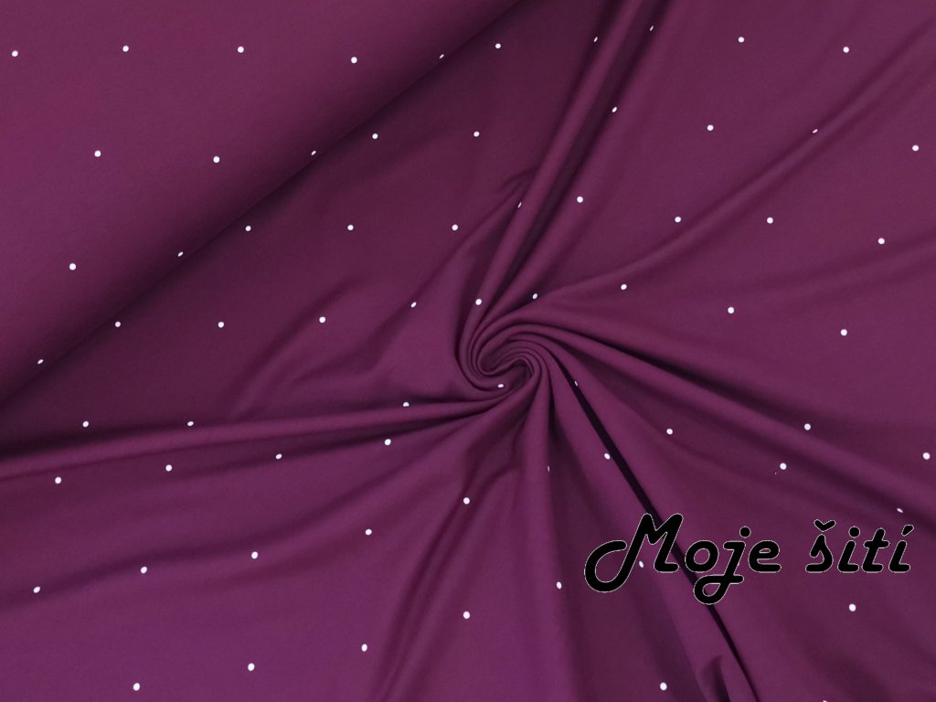 Teplákovina s elastanem Bílé puntíky 10cm od sebe na tmavé švestce
