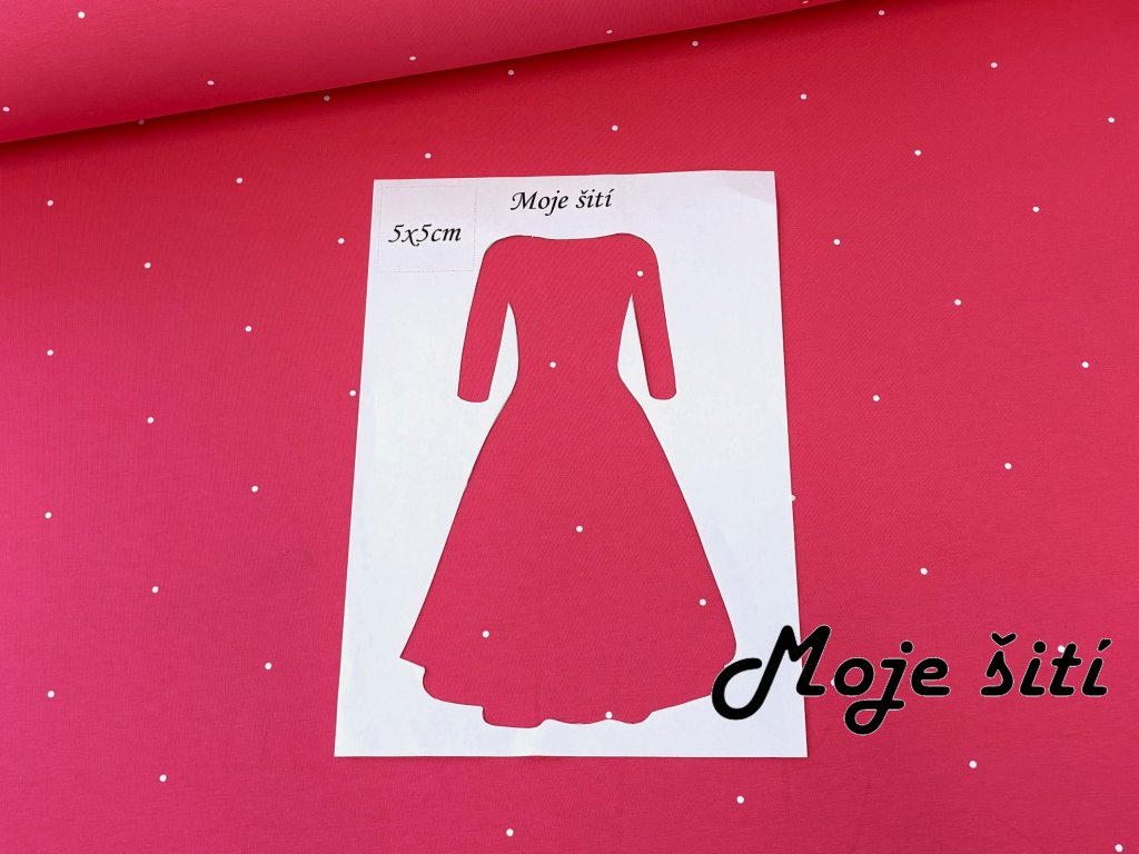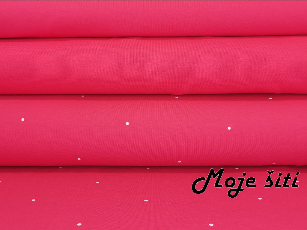 Teplákovina s elastanem Bílé puntíky 10cm od sebe na zářivě růžové K