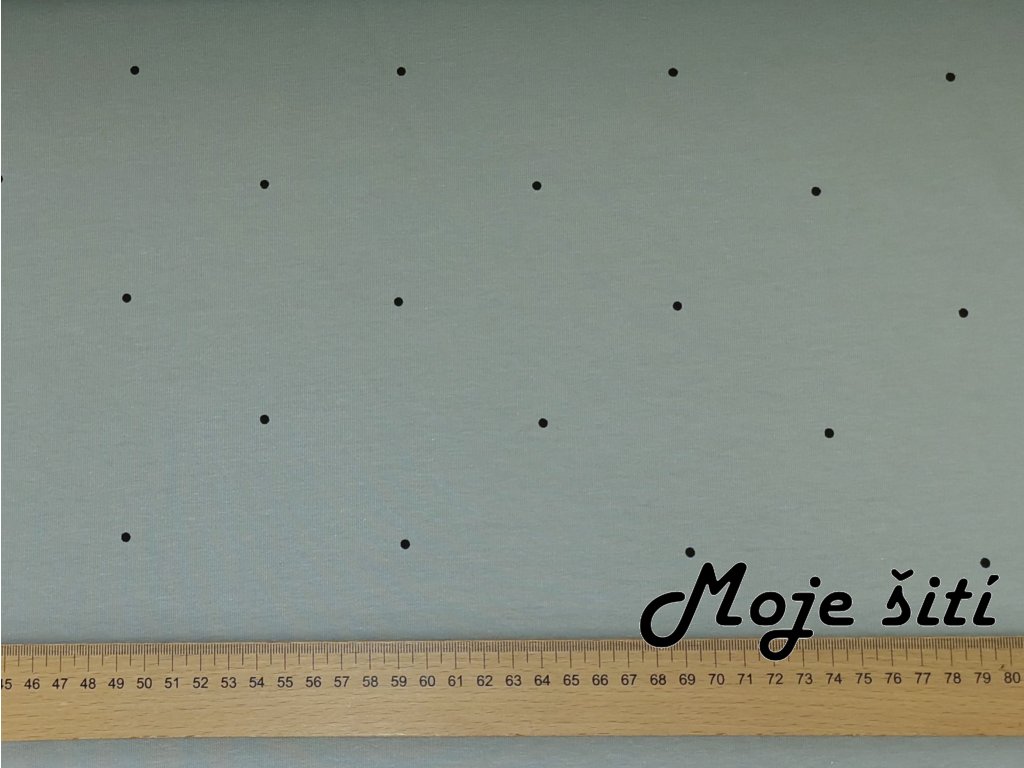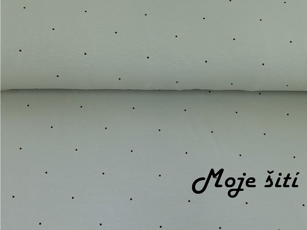Teplákovina s elastanem Černé puntíky 10cm od sebe na světle šedé