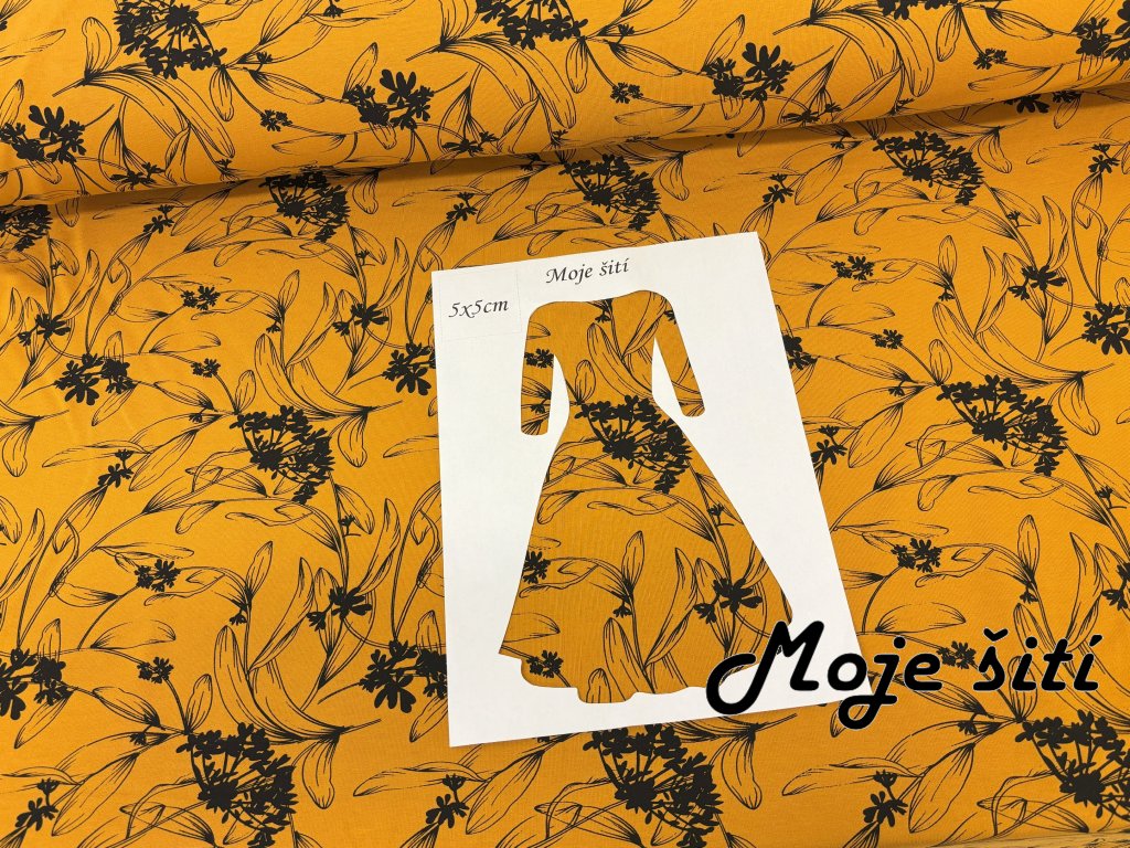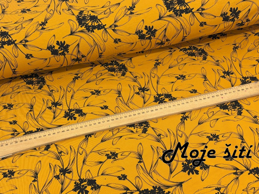 Teplákovina s elastanem - Listy s kmínem na hořčicové K