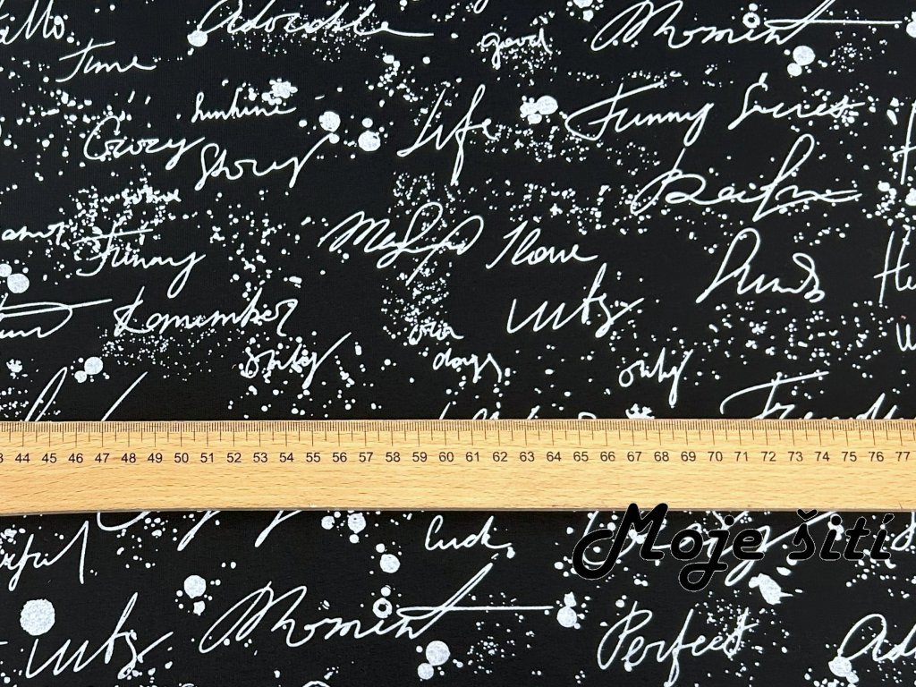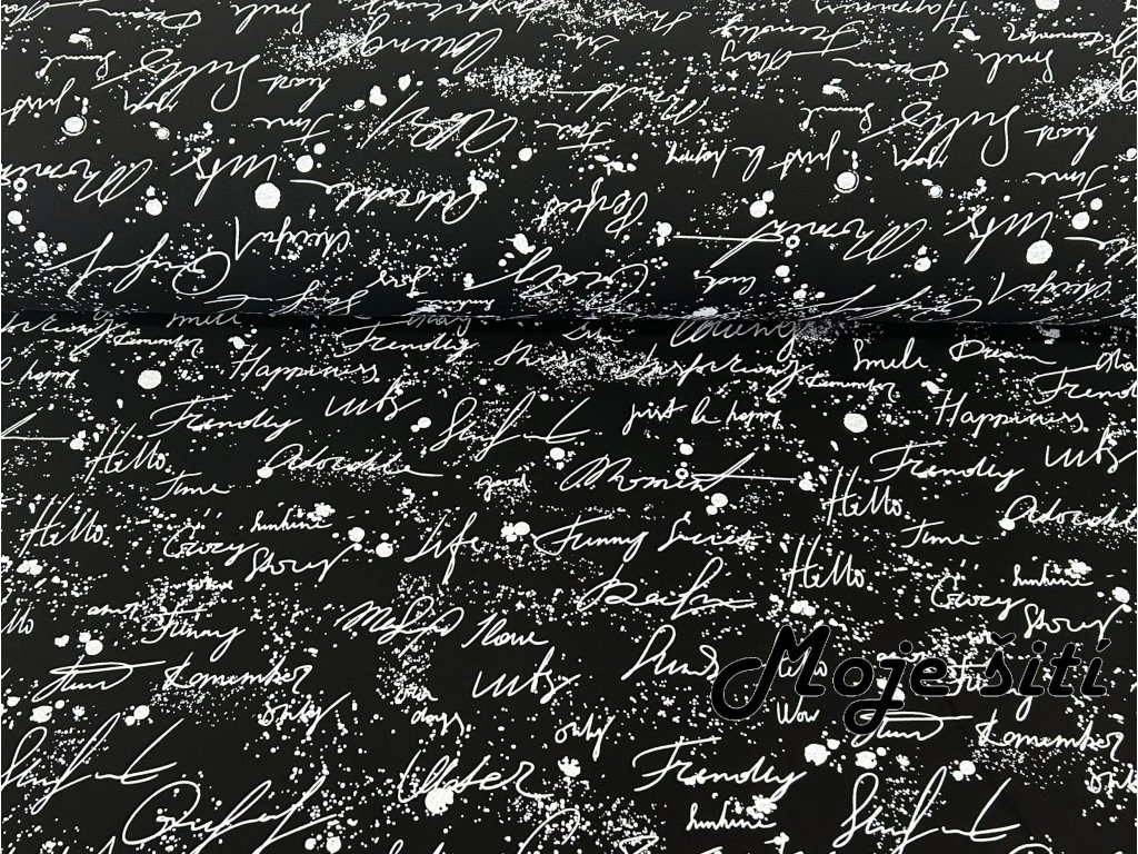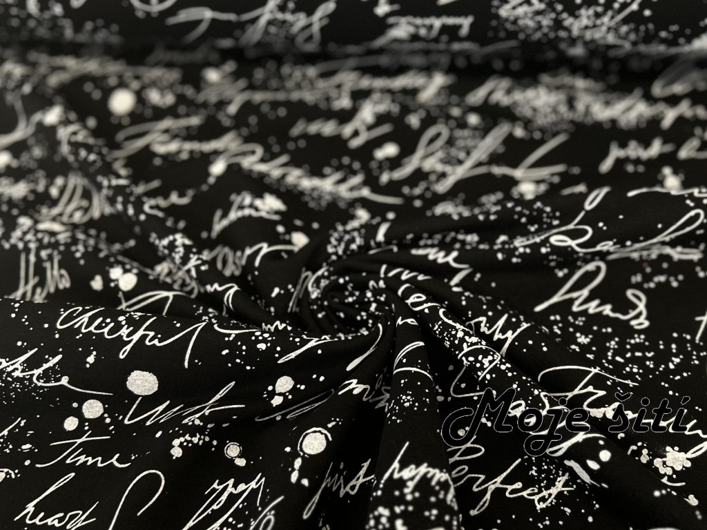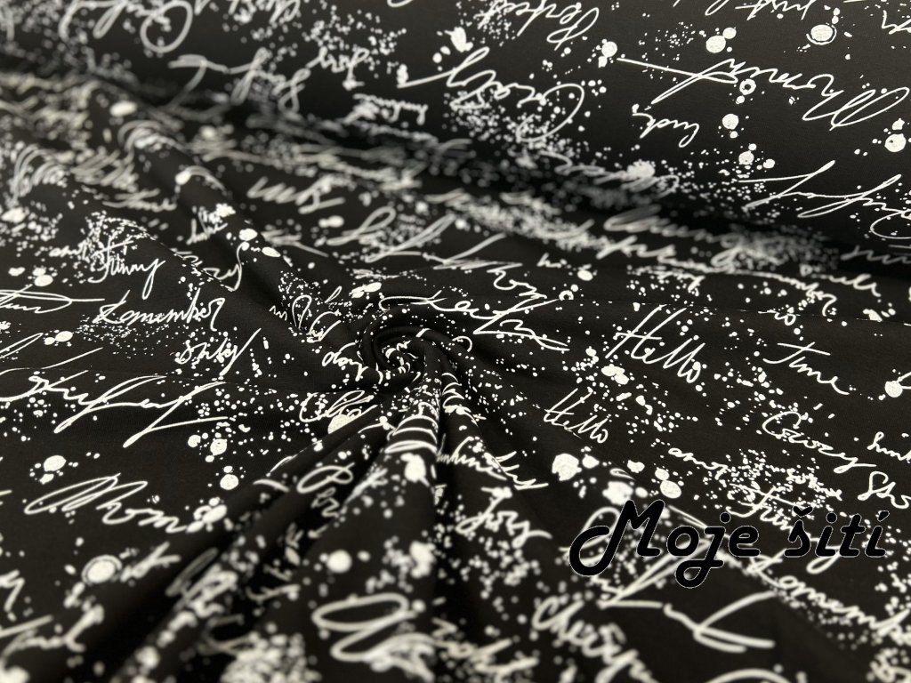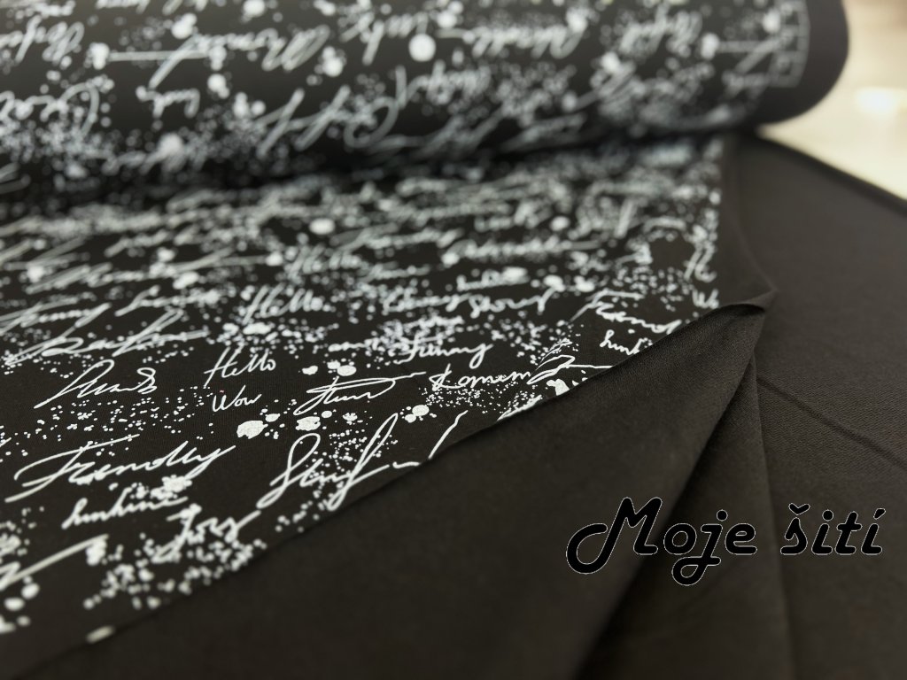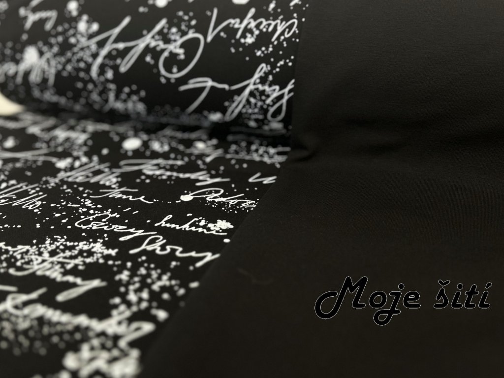 Teplákovina s elastanem - Nápisy na černé