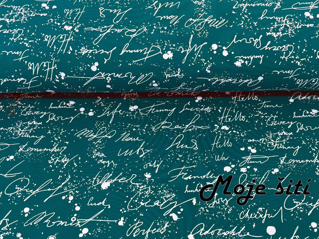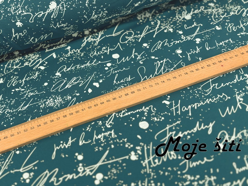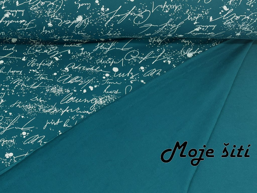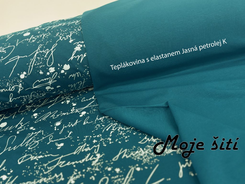Teplákovina s elastanem - Nápisy na jasné petroleji