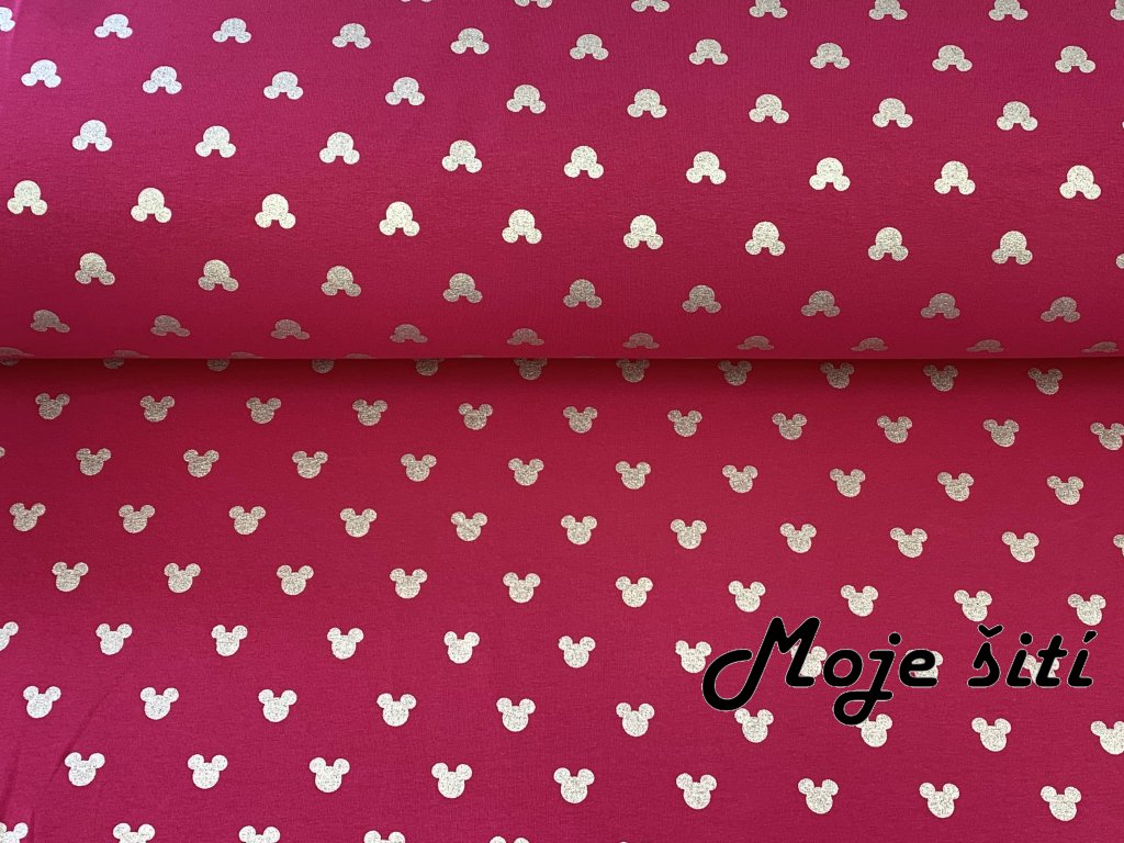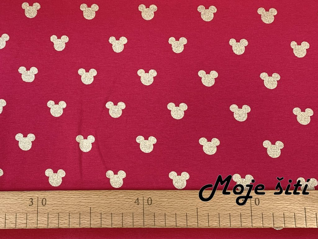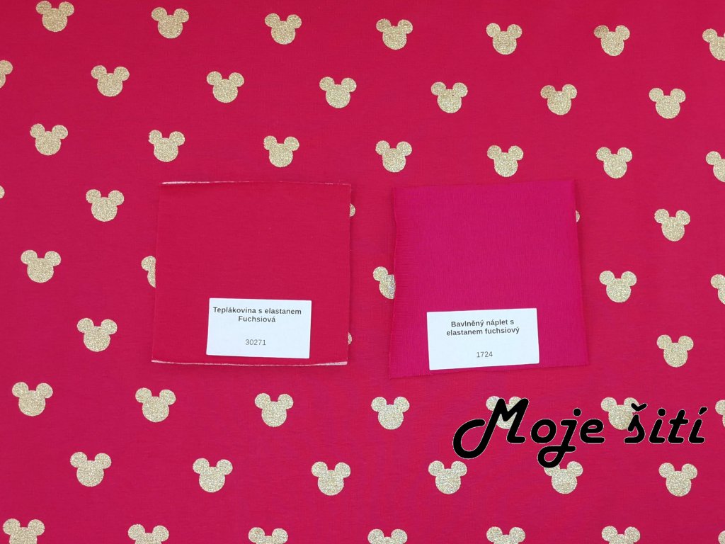 Teplákovina s elastanem Zlatý miky na fuchsiové