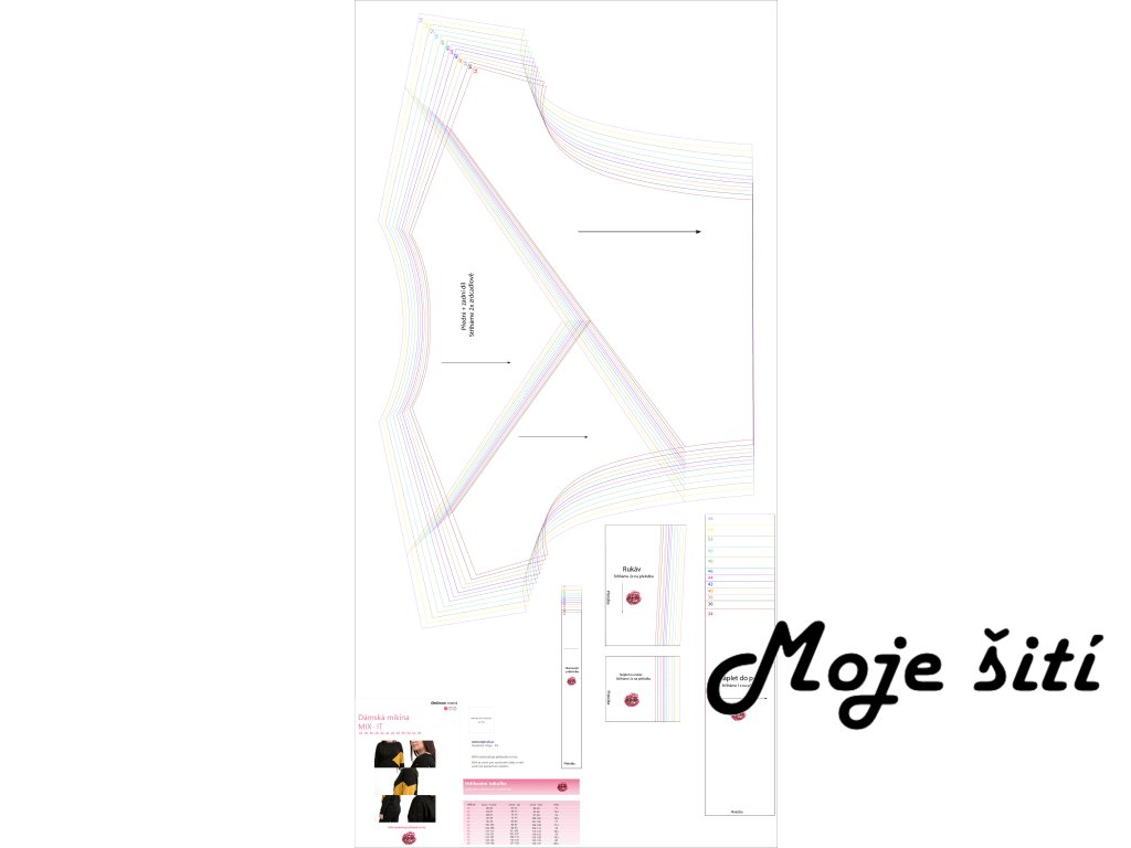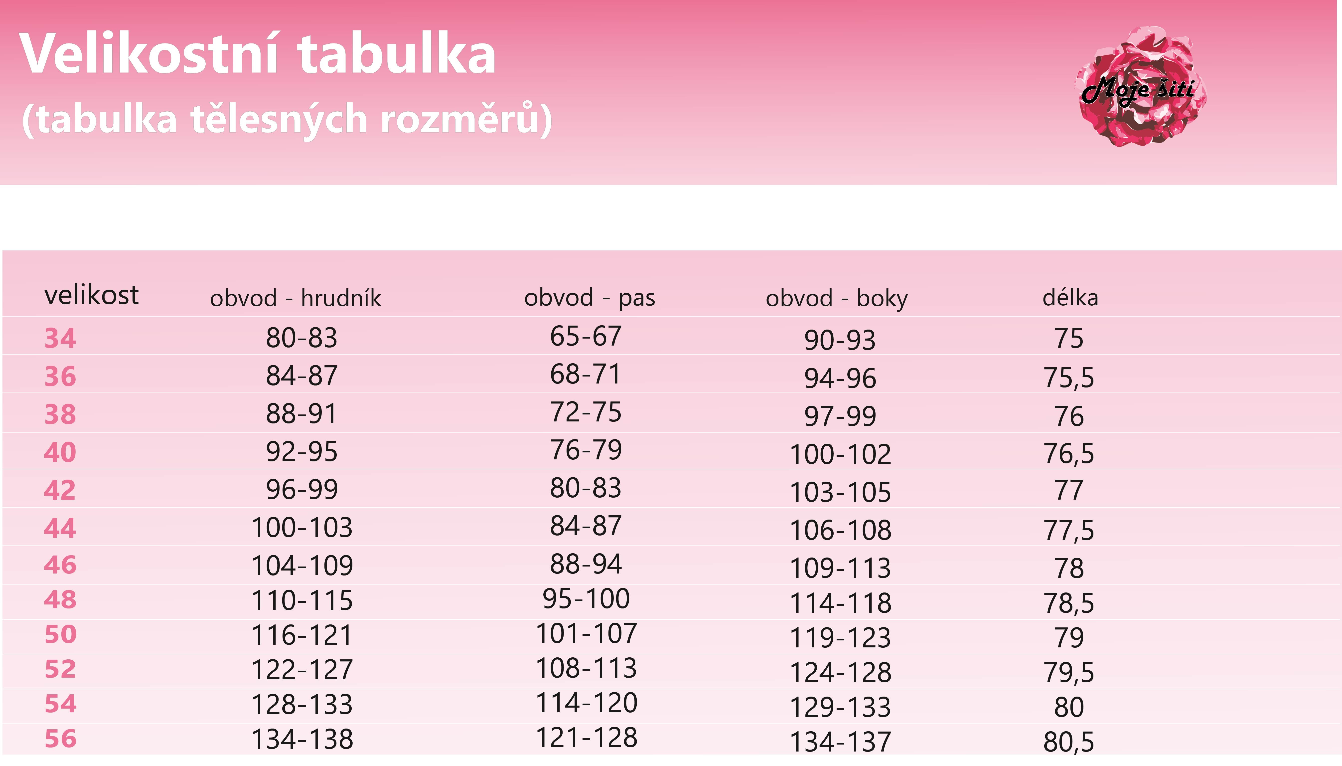 Tabulka velikostí je natištěna přímo ve střihu.