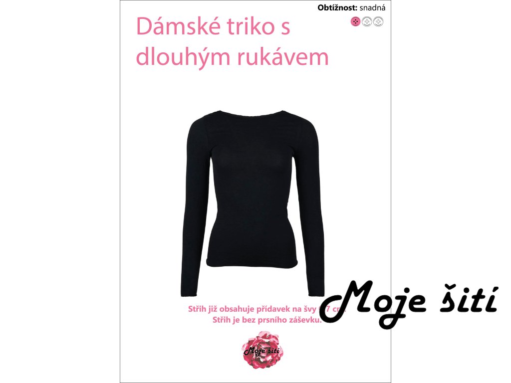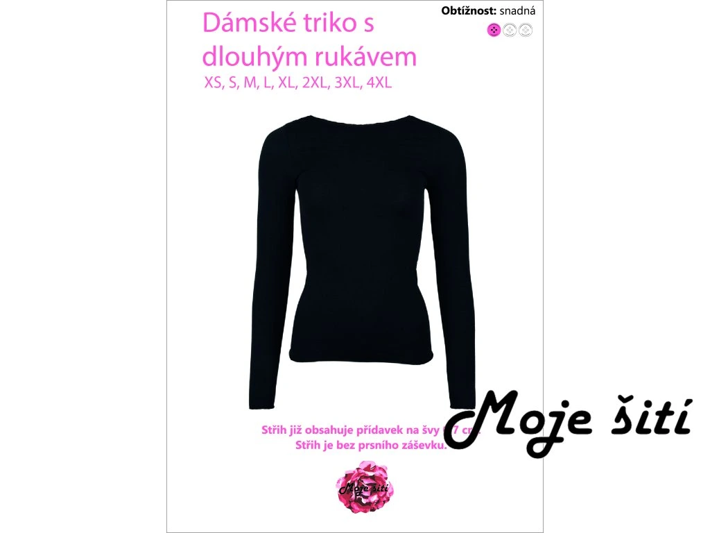 Tištěný střih Dámské tričko s dlouhým rukávem