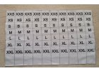 Štítky k označení oblečení. Bílé saténové a úpletové etikety do švu 3 x 4 cm.