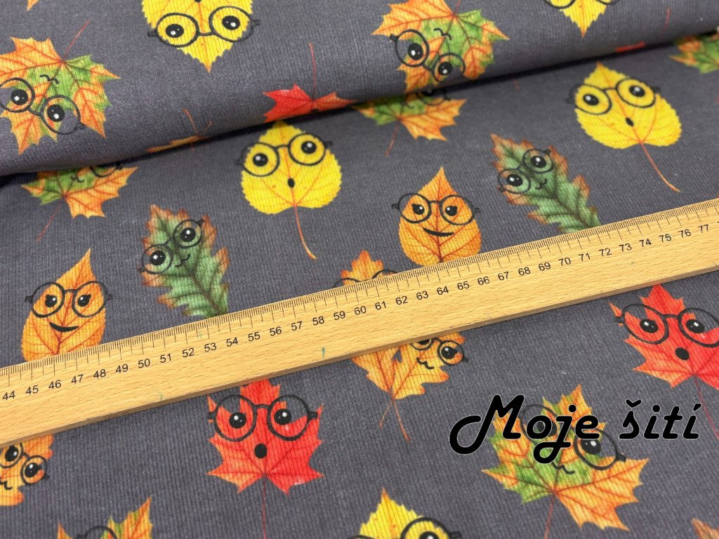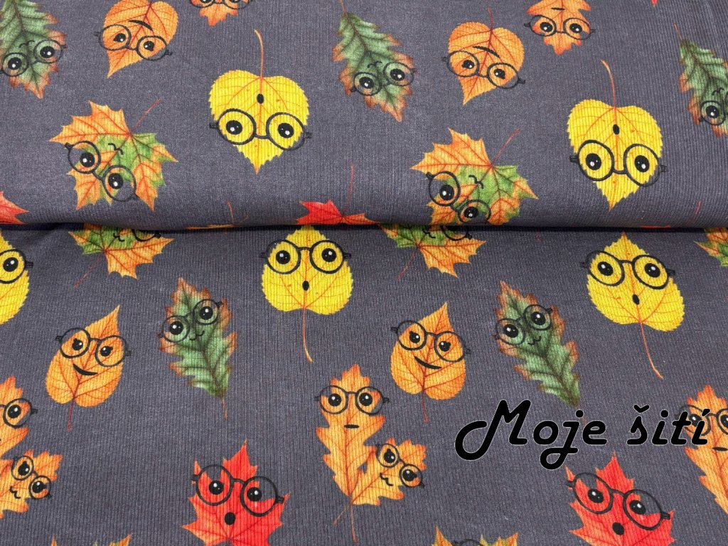 Žebrovaný úplet - Akvarelové lístečky s brýlemi