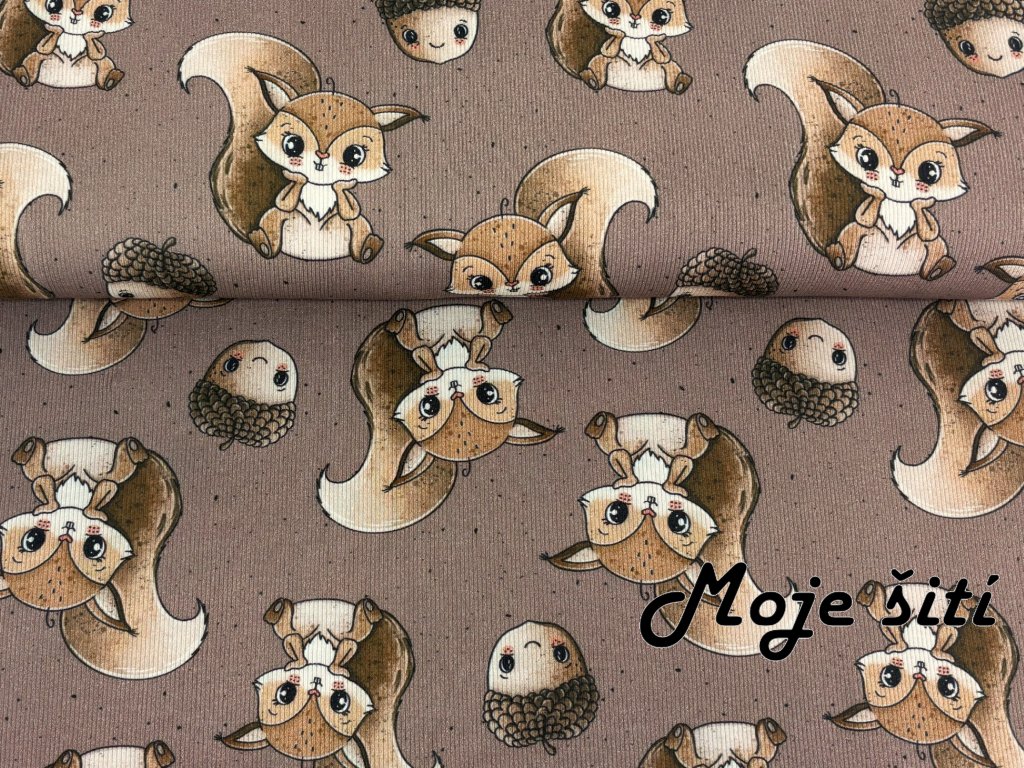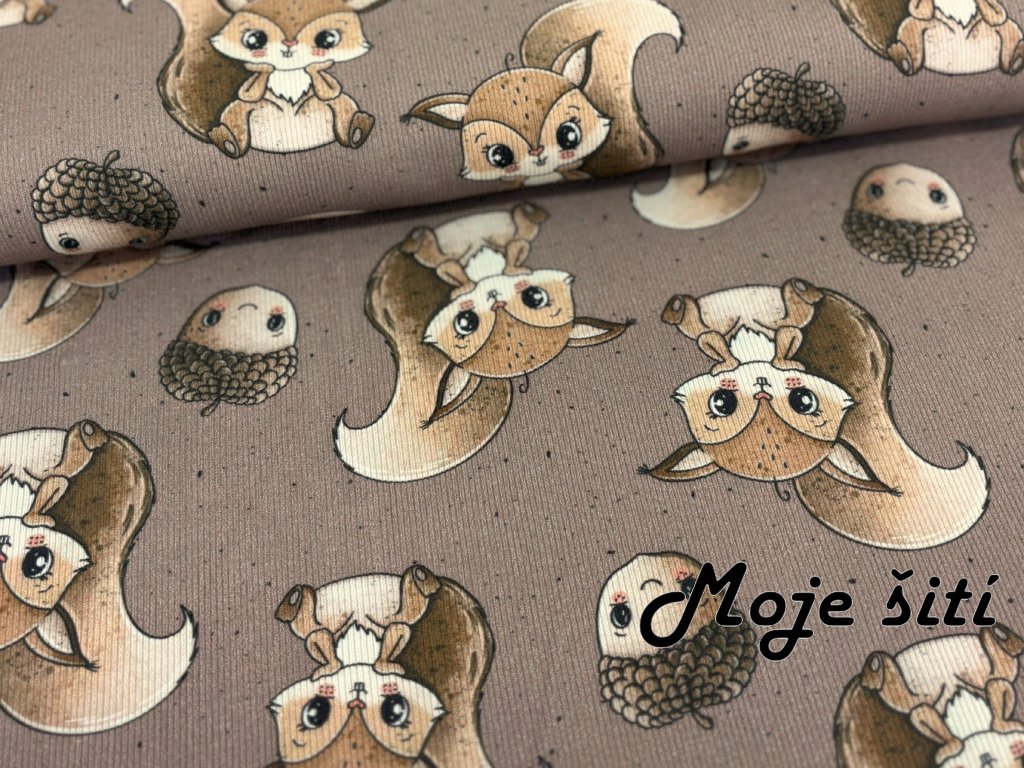 Žebrovaný úplet - Veverky a žaludy