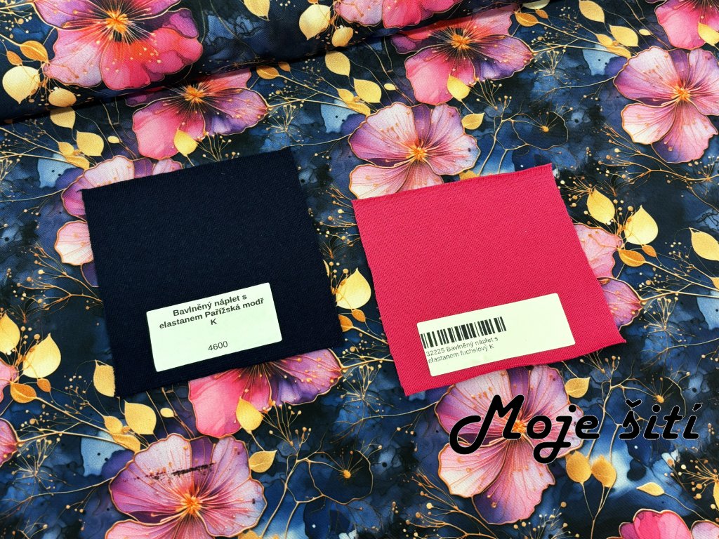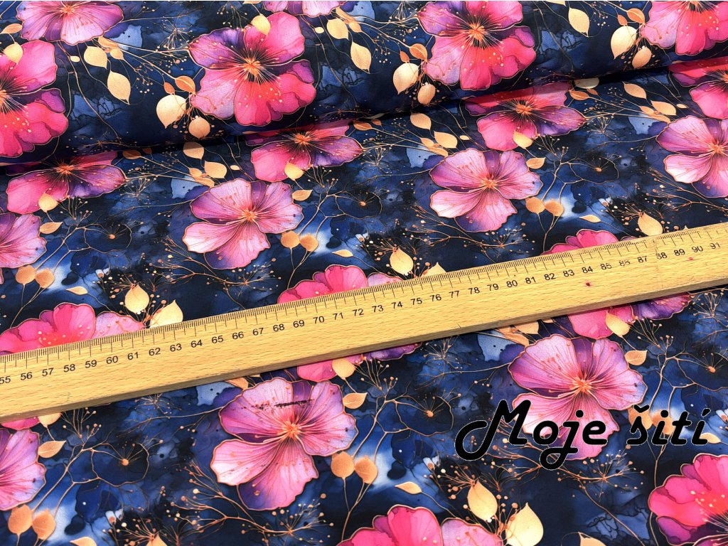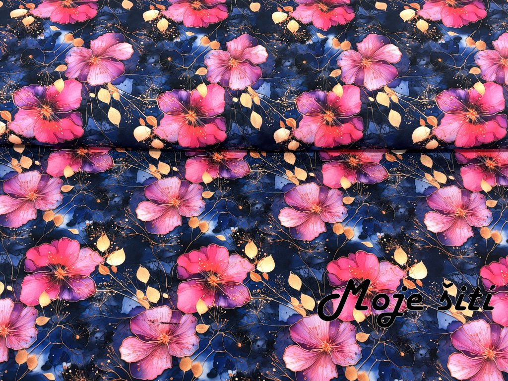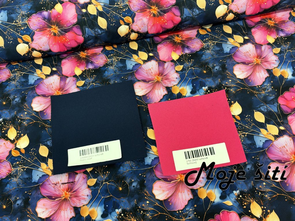 Zimní softshell - Fuchsiové květy na noční modré
