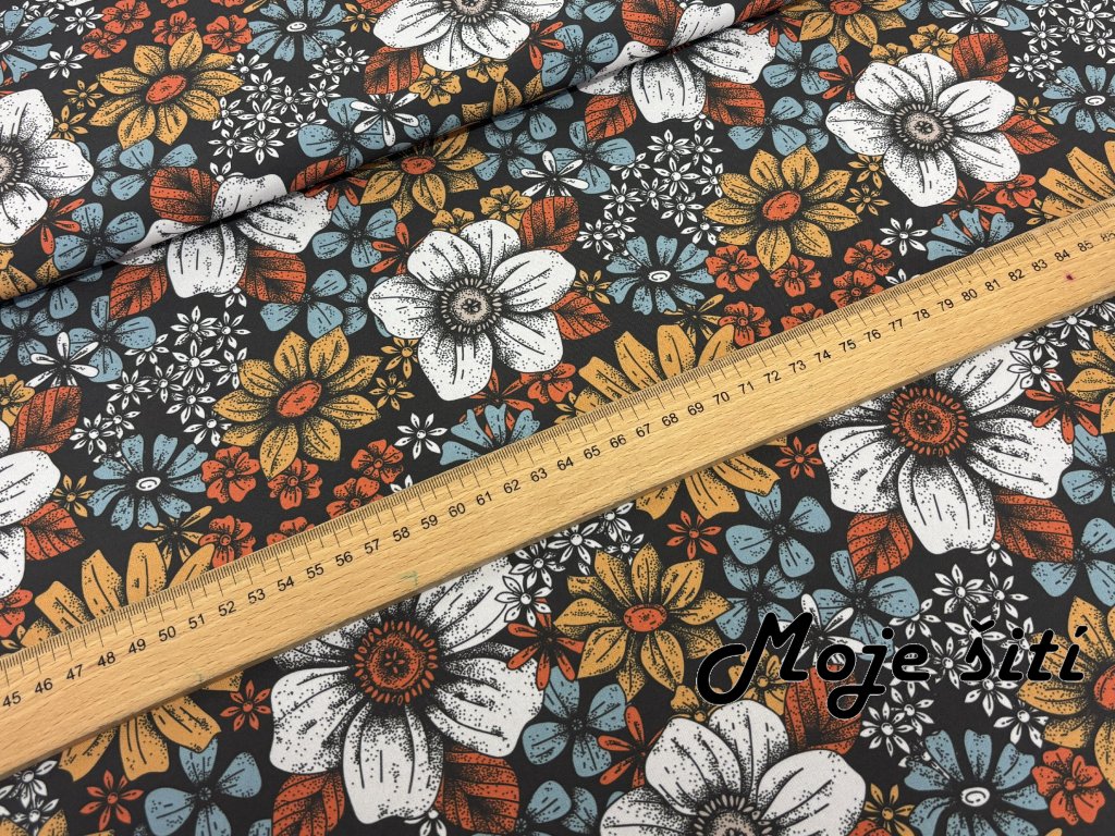 Zimní softshell - Květy v barvách podzimu