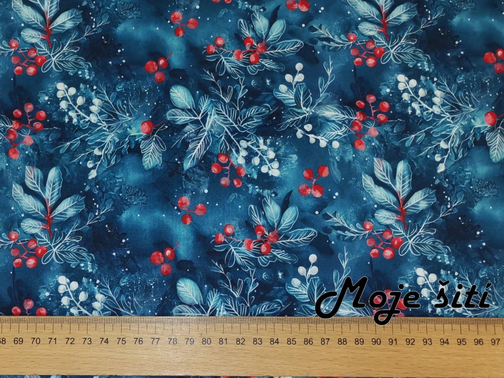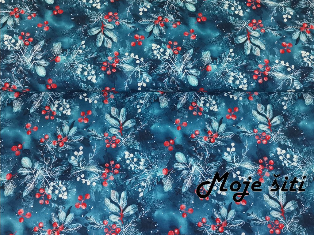Zimní softshell - Ledové větvičky s červenými bobulkami