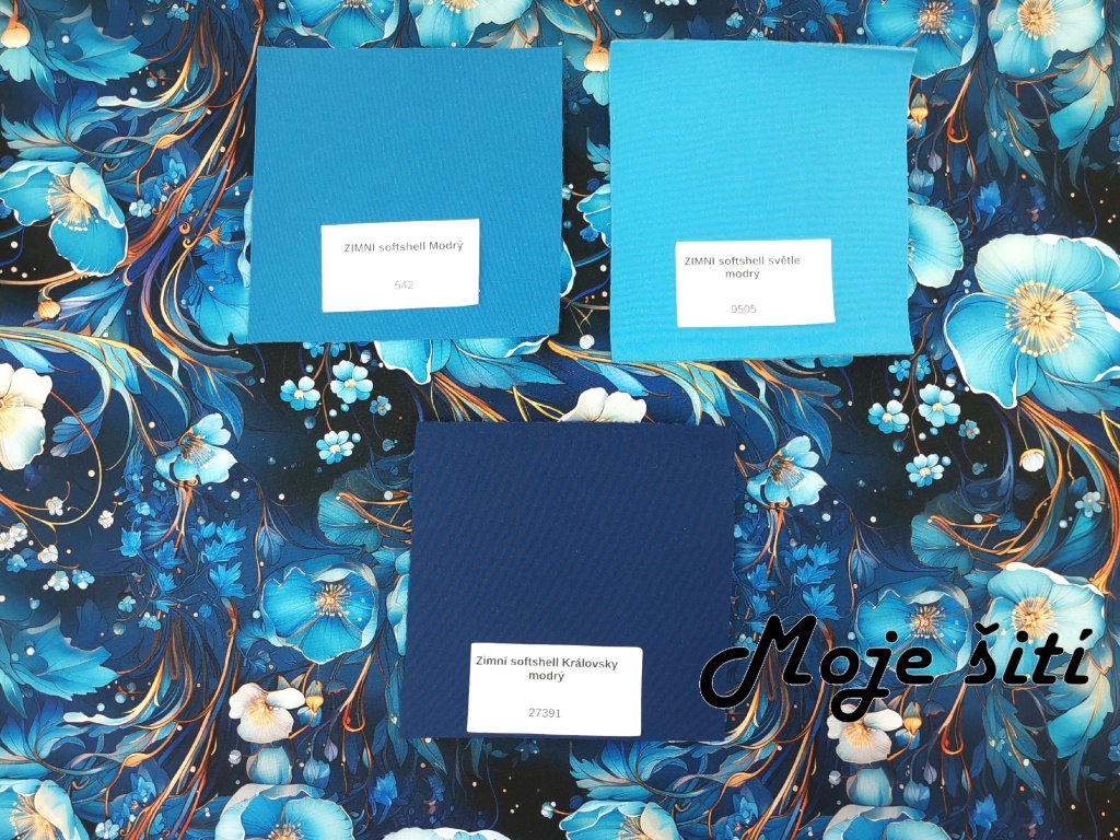 Zimní softshell - Modré magické kvítí