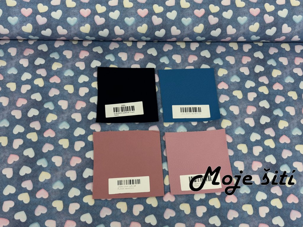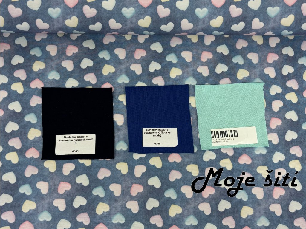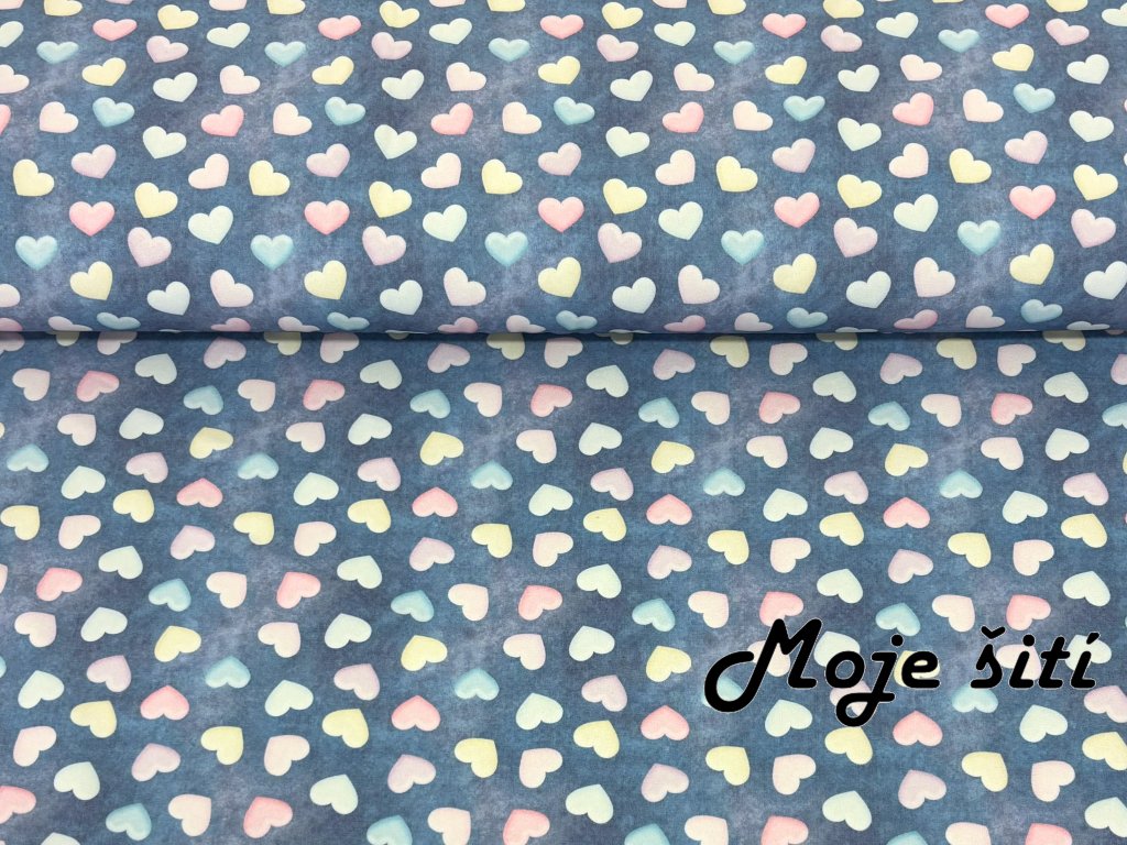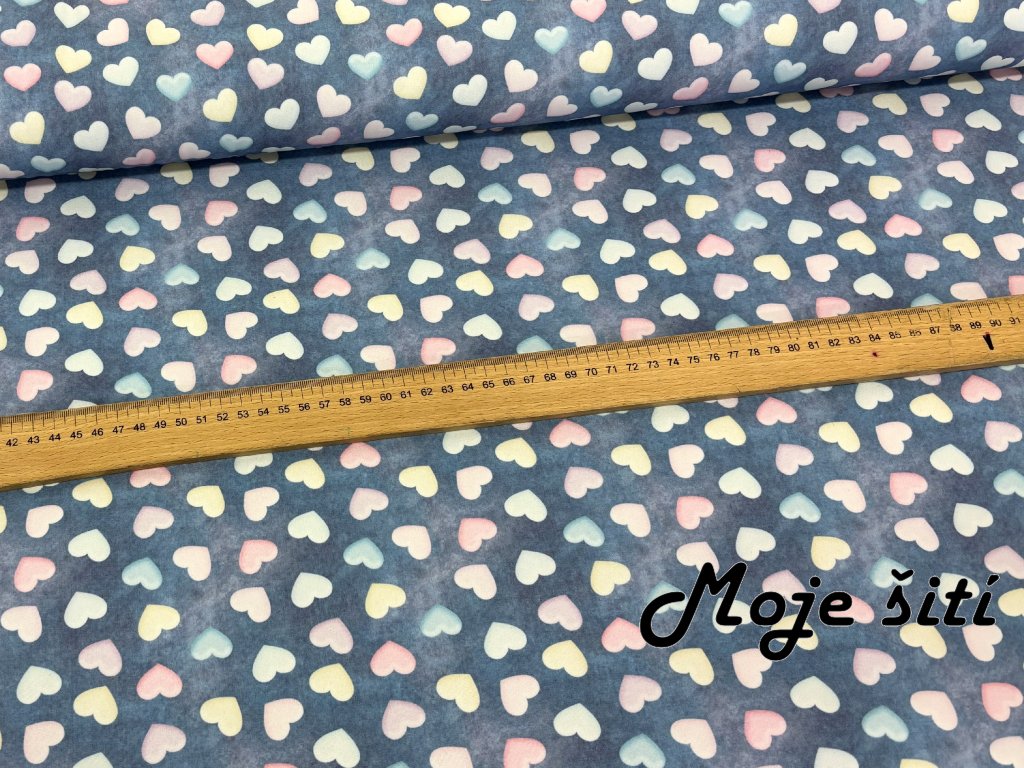 Zimní softshell - Pastelová srdíčka na tmavě modré VADA