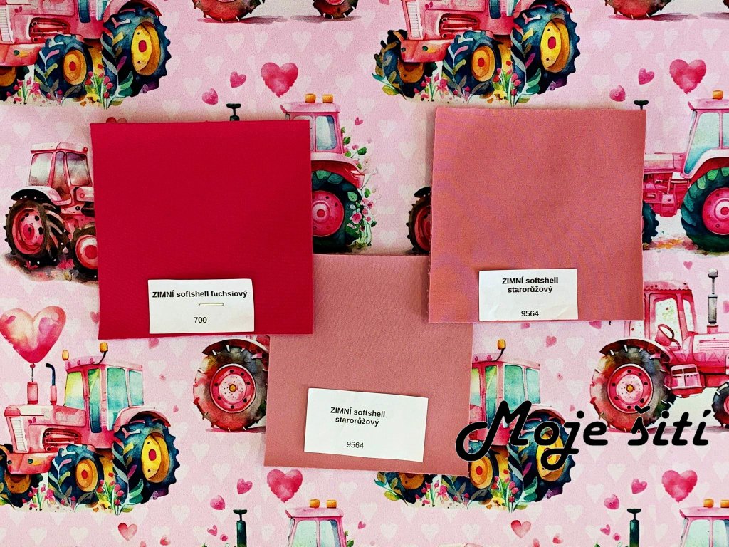 Zimní softshell - Růžové traktory