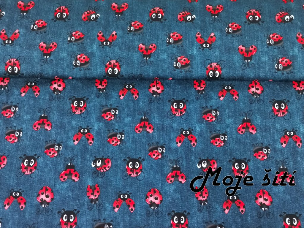 ZIMNÍ softshell s beránkem - Červené berušky na jeans