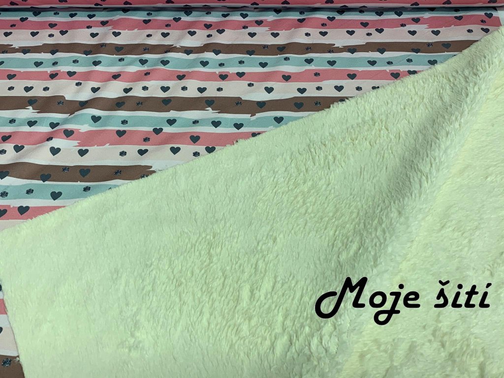 ZIMNÍ softshell s beránkem Srdíčka na pastelových pruzích