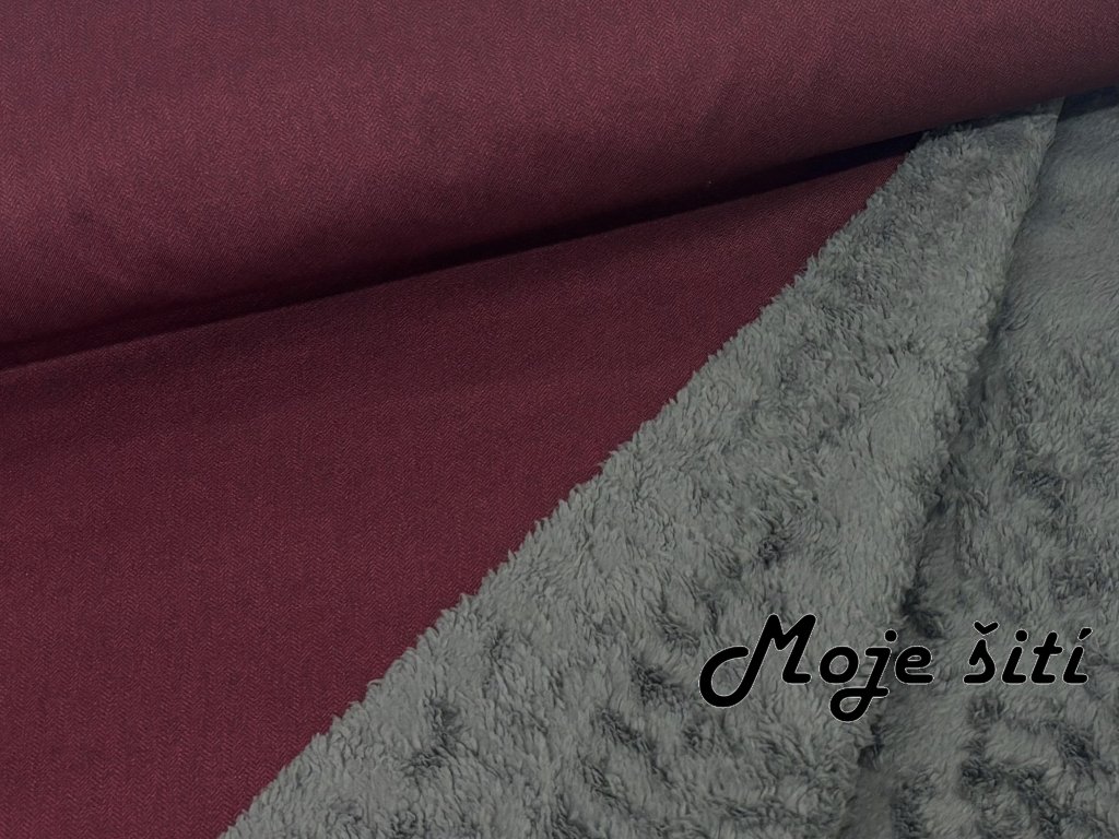 ZIMNÍ softshell s beránkem - Rybí kost bordó